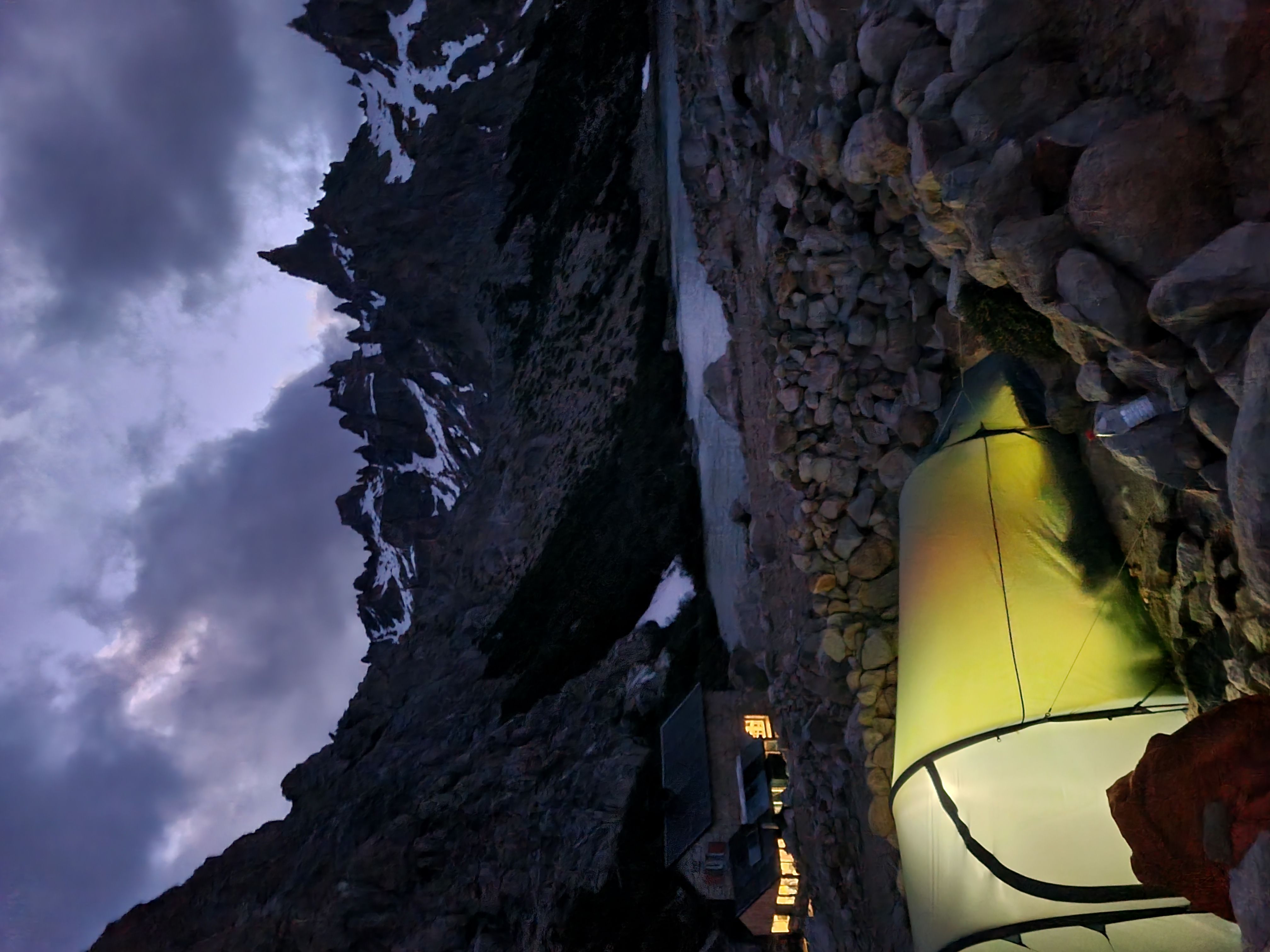 Vel nede forbereder vi en stor middag og nyter fjellufta. Det uunngÄelige faktum forblir dog usagt - vi har ikke nok mat og gass til hele uka. Vi legger oss til Ä sove og funderer pÄ hvordan vi skal lÞse dette uten Ä miste for mye klatring.