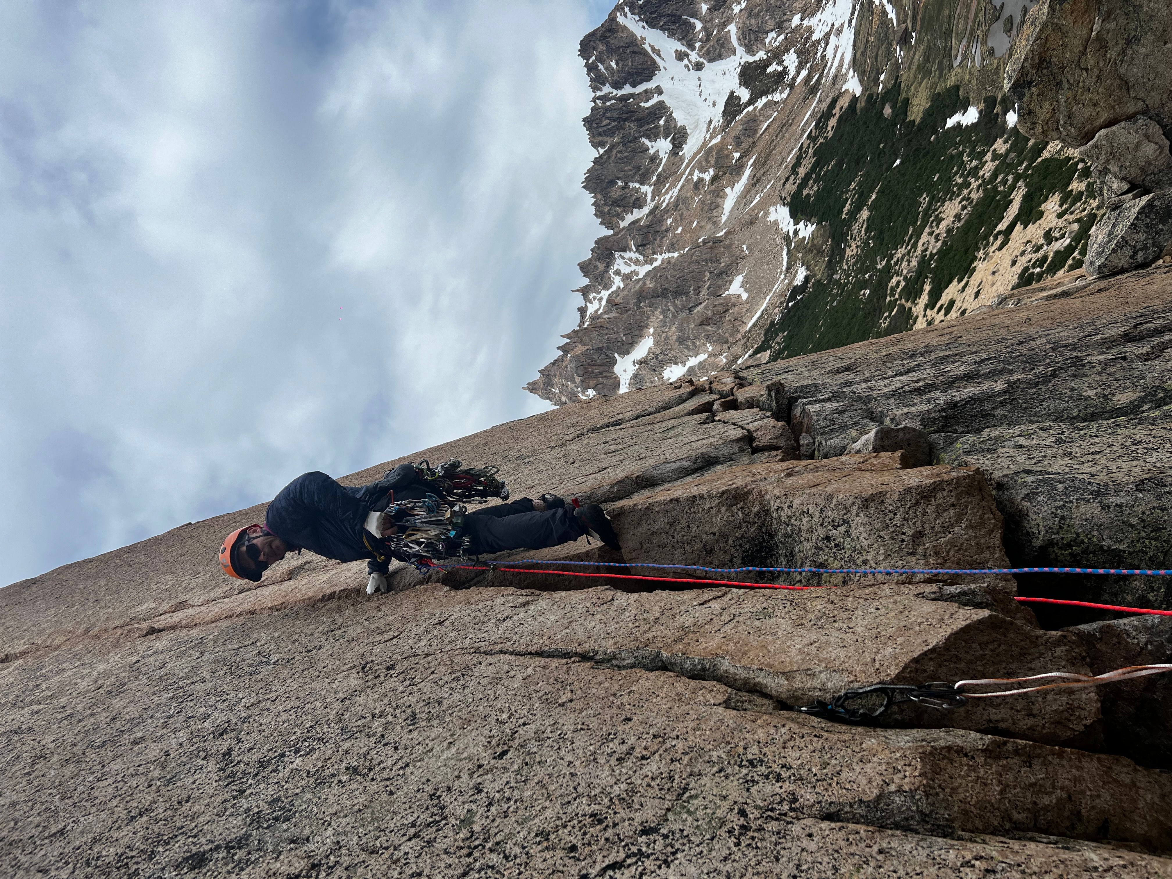 Etter bandasjeskifte, morgenkaffe, og et farvel med australerne, blir det klart at Sondre tar en hviledag til for tommelen, og jeg linker opp med to sveitsere i dag, Ramona og Adrian - de hadde holdt hviledag i gÄr, men hadde stashet rack og tau i dalen ved siden av, ca 2t Ä gÄ fra hytta. De jobber begge to som tindevegledere i Sveits, sÄ vi har mye Ä snakke om pÄ anmarsjen dit. Ruta vi har valgt gÄr fort - Ramona flyr opp den fÞrste halvdelen, og jeg tar den andre halvdelen. Vi rekker Ä prÞve oss pÄ en rute til, Objetivo Luna, men vi var for treige, sÄ vi mÄtte baile av toppen. Utrolig fin dag ute i fjella, og vi er fÞrst tilbake i hytta til kl 22.