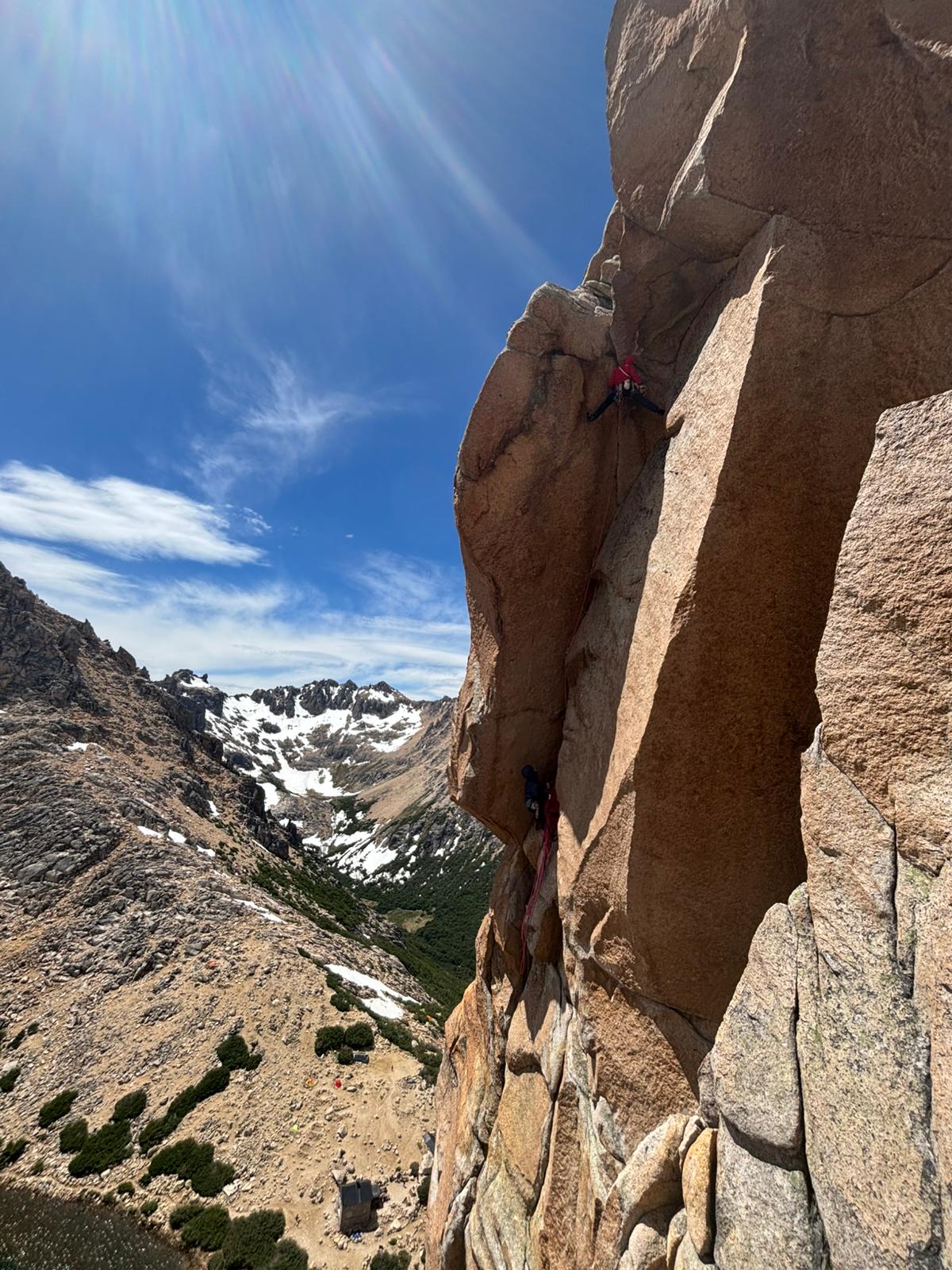 VĂŠret er for bra til Ă„ avlyse klatringen idag, sĂ„ vi starter opp mot Aguja Abuelo for Ă„ fĂ„ det beste ut av finvĂŠrsdagen. Jeg leder opp bunnen av “Del Techo”, og Sondre fĂ„r cruxet. Stemningen er mye bedre etter at vi har klatret, og tar en runde til opp Normalveien, hvor vi fĂ„r eksperimentere med stack-jamming. EtterpĂ„ bĂŠrer det ned til hytta, hvor vi drikker en pils og spiser den siste salamibiten vĂ„r mens vi funderer pĂ„ hvordan dette skal gĂ„. Revehistorien har gĂ„tt rundt, og vi er nĂ„ blitt kjent som “Los Noruegos con el Zorro”.