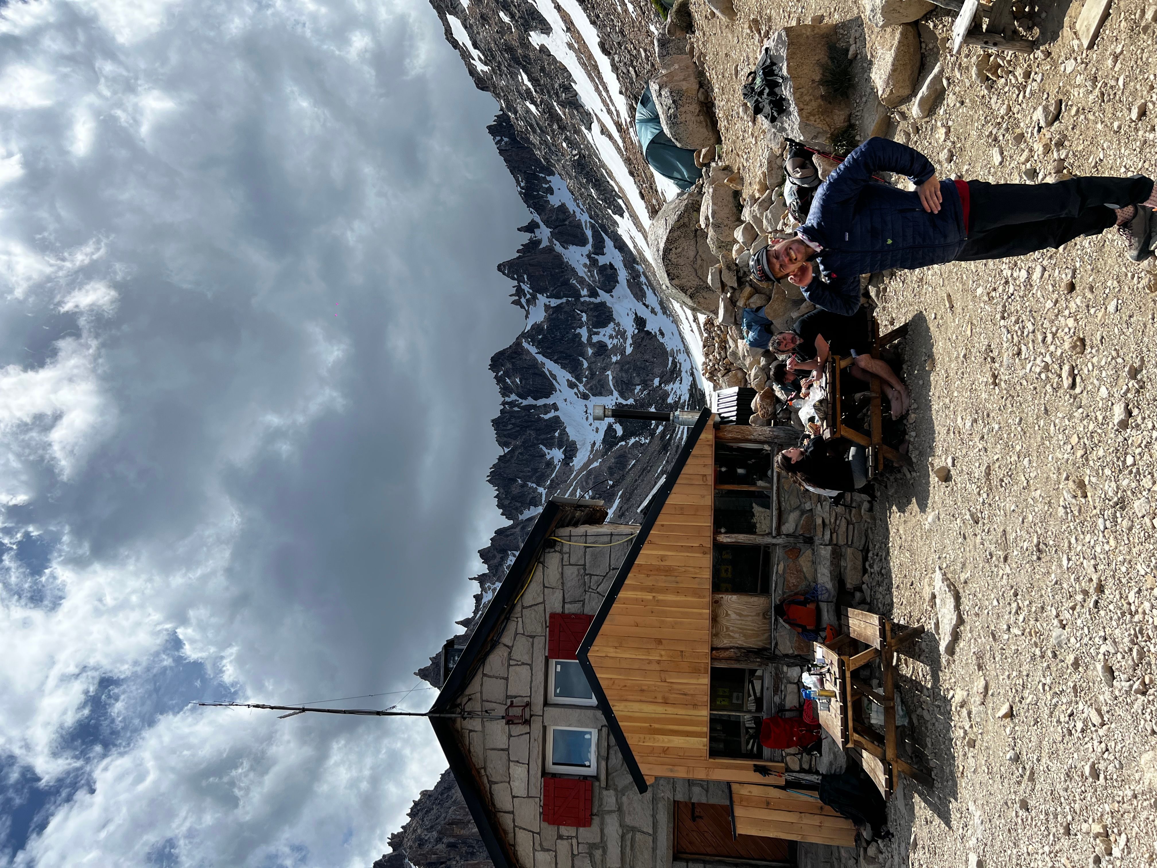 Heldigvis ligger hytta rett i skogbrynet, og vi skimter den med en gang vi kommer opp pÄ kanten. To slitne nordmenn fÄr endelig lasset av seg inomhus, og kjemper en iherdig kamp for Ä fÄ opp teltet som skal vÊre vÄrt hjem de neste 10 dagene. Vi er heldige med teltplass og fÄr et sted som bÄde er skjermet og har utrolig god utsikt. Vi feirer med en rask middag og crasher omgÄende etterpÄ.