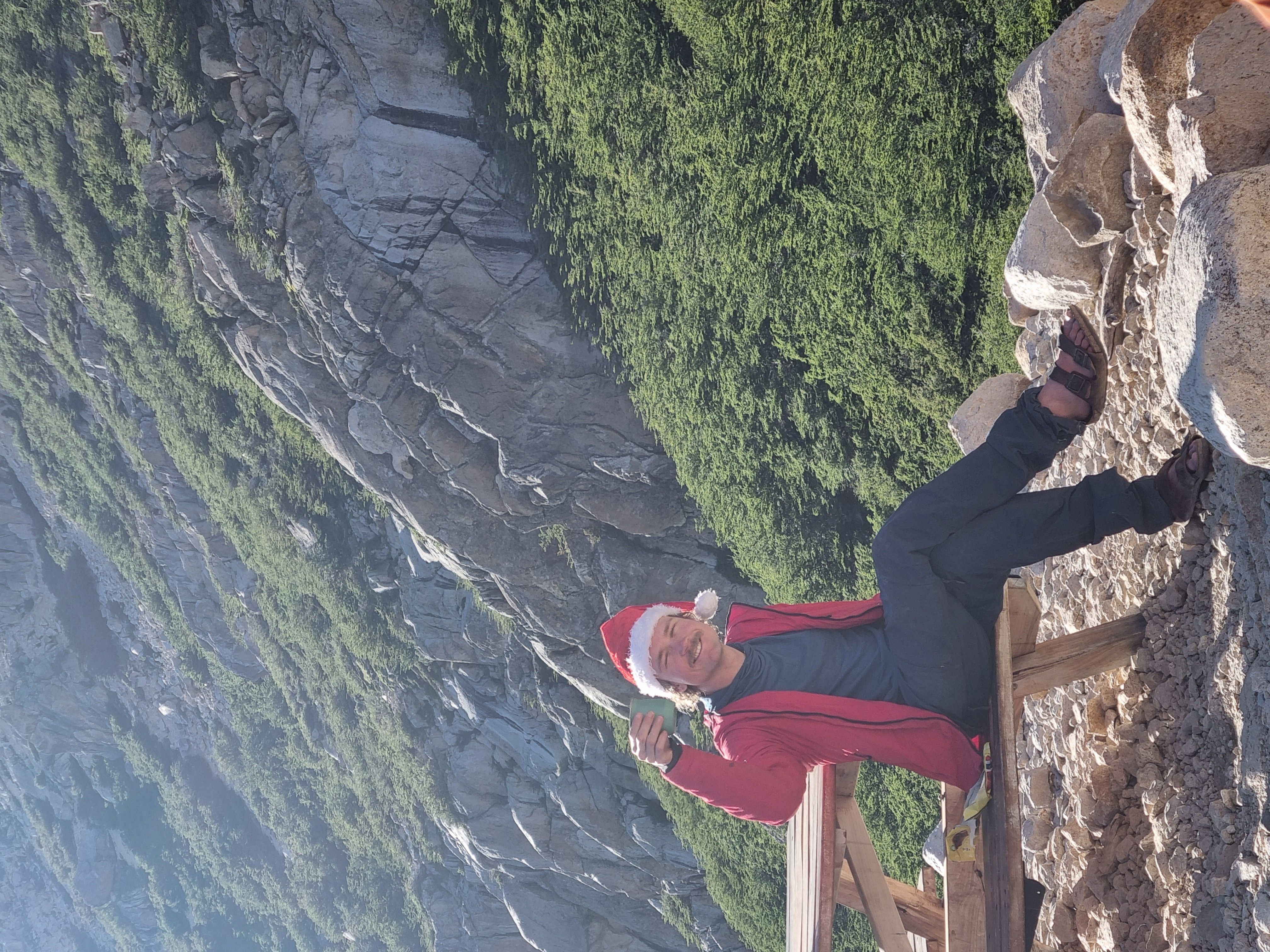 Under innmarsjen er det god stemning, og ved innsteget ser vi en helt perfekt hĂ„ndsprekk som gĂ„r noen hundre meter vekk fra normalruta, og vi sikter oss inn pĂ„ den for Ă„ unngĂ„ trafikken pĂ„ fjellet. Jeg fĂ„r lov til Ă„ stĂžte fĂžrst, og har god flyt de fĂžrste 8 meterne, fĂžr sprekken utvider seg til en offwidth. Mens jeg plasserer en sikring tryner jeg, og rekker akkurat Ă„ rope “faller!” fĂžr jeg henger i tauet. Allerede fĂžr jeg har kommet meg inn til veggen igjen, hĂžrer jeg sondre skrike under meg - tommelen hans har satt seg mellom tauet og bremsen, og han blĂžr overalt. Jeg kommer meg raskt ned, og vi fĂ„r satt i gang med Ă„ rense sĂ„ret til Sondre og fĂ„ pĂ„ han bandasjer. Mens vi venter pĂ„ at smertestillende skal kicke inn utveksler vi julegaver - jeg har et bilde av et Zappfe-portrett til Sondre, og han har kjĂžpt noen flotte hotpants-shorts i leopardmĂžnster til meg. Plutselig hĂžrer vi en kjent stemme - det er Nick, som har sett oss, og tilbyr seg Ă„ komme til unnsetning. Hjelpen gjĂžr utmarsjen betraktelig mye lettere, og vi er alle i godt humĂžr nĂ„r vi nĂ„r ned til Frey.